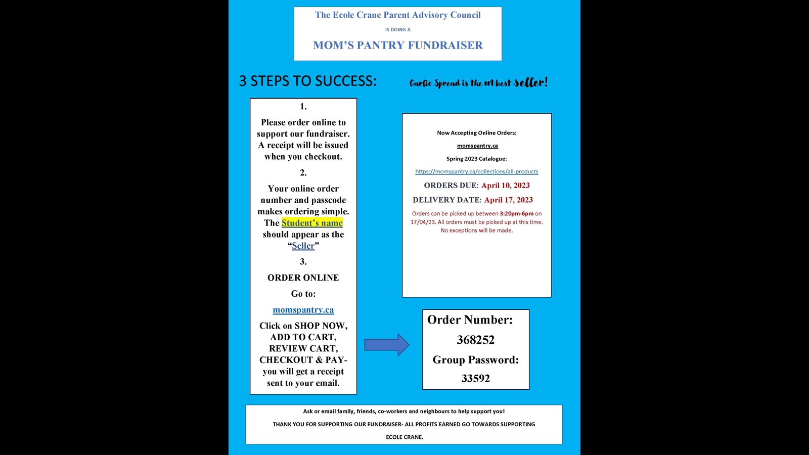 1. Please order online to support our fundraiser. A receipt will be issued when you checkout.
