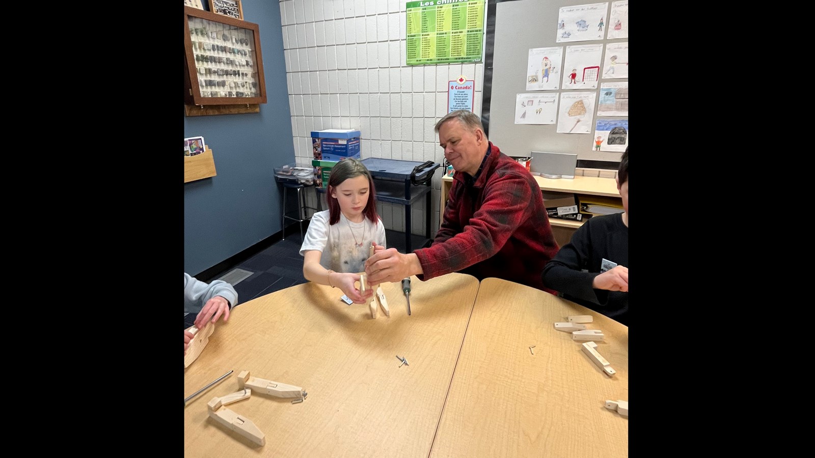 M. Robert Loiselle, MLA of St. Boniface, visited grade four class on the afternoon of February 9th. He came to make Bonhomme Gigueur dolls with the students. M. Loiselle has been crafting these dolls since he was in grade eight, back in 1982! For the past 15 years, he has provided doll kits for the Canada Life School Program at Festival du Voyageur. Although these kits weren't available to schools this year, M. Loiselle kindly agreed to bring in parts he had from over the years, along with some leftovers I had from previous years, to lead this special activity with my class. The students were absolutely thrilled! In addition, he read to the class for I Love to Read Month and shared some valuable insights about Métis culture.
