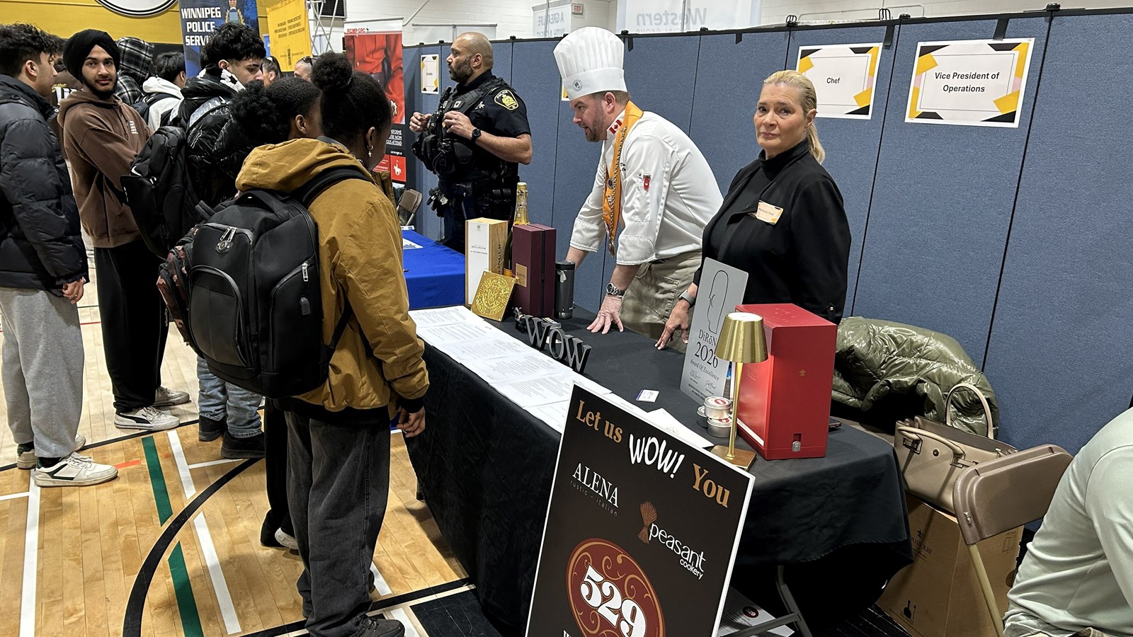 Sponsored by the Winnipeg Fort Garry Rotary Club, the event featured 46 booths where students could learn about careers in pharmacy, pest control, construction, engineering, aerospace, finance, hospitality, law enforcement, and much more, giving them a chance to explore where they want their futures to go after high school.