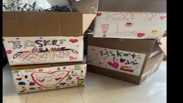 “All students/families are invited to donate items for the baskets. Grade 4 Leaders help with advertising in the school, collecting donated items and pack the baskets, which are boxes the Grade 4 Library leaders decorate,” says Bourbonnais.