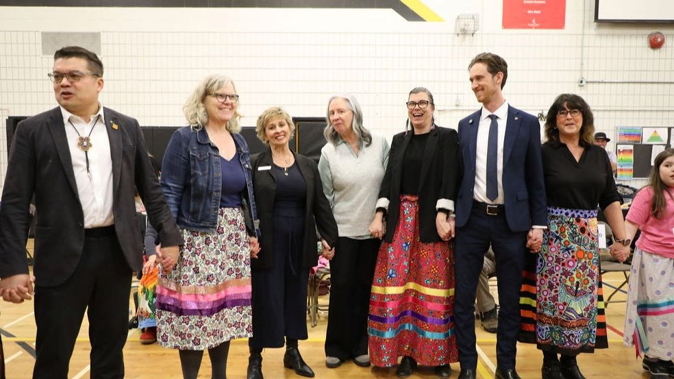 This year, Arthur A Leach, Ecole Bonnycastle School, and Fort Richmond Collegiate alongside Makoon Transition Inc. celebrated our third annual Round Dance, a traditional Indigenous social gathering and ceremony that brings people together to celebrate community as participants join hands and dance in a large circle around drummers in the center. Open to everyone, it's a time for connection, remembrance, and building community.