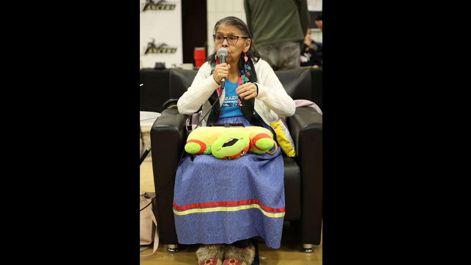 Gramma Shingoose lifted her pipe to start us off in a good way reminding us of the importance of keeping children, their identity, and safety in the center of our hearts and in all we do. Gramma Shingoose spoke for the food and the give-a-way items.