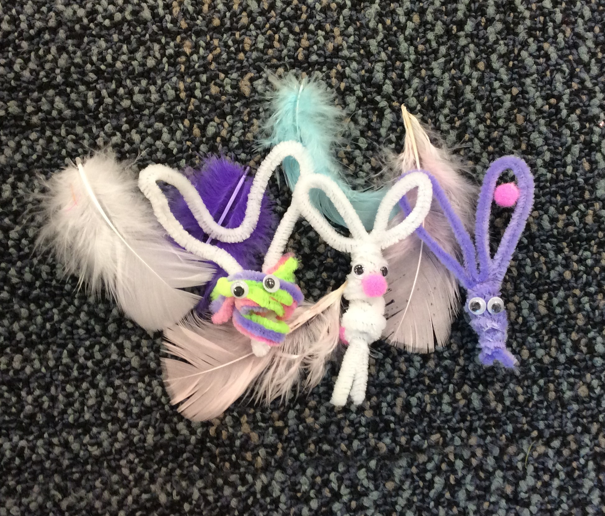 During this week, we have been able to do open ended-activities and creative projects. We played games, had large movement activities and listened to music we like. We made bunnies in the library; each one was different and unique. Peyton made three and LeeAnn created a 3-D cat instead.