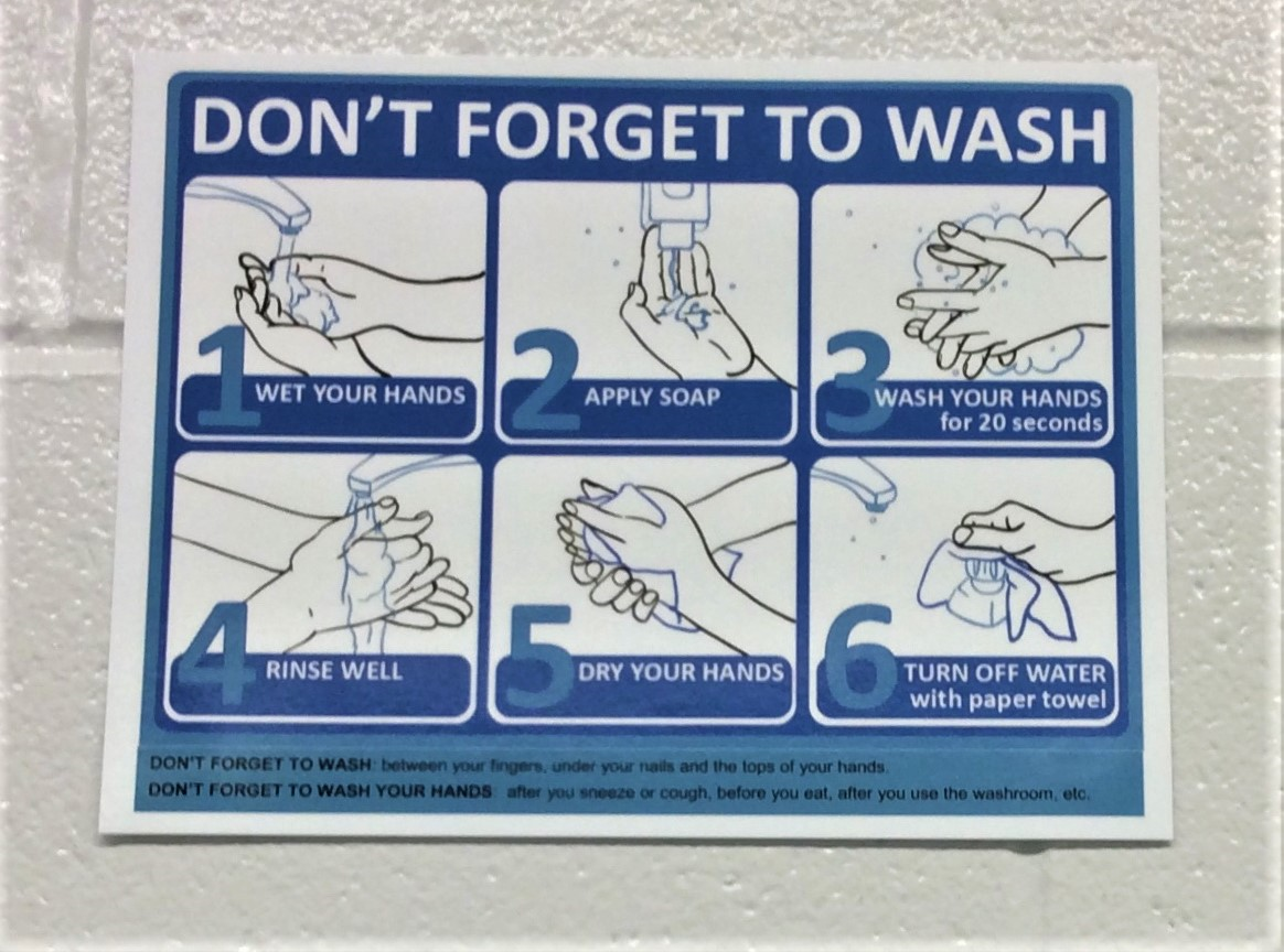 Our first piece of advice is to wash your hands. Wash them for at least 30 seconds or as long as it takes to sing the alphabet. Remember soap is important! After, when you open the door, use a paper towel. That way if someone carelessly did not use soap or sneezed on the doorknob, you would be safe.