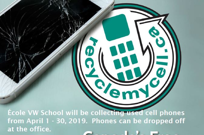 In April, our school will collect used cell phones for recycling. Every school that collects at least 20 phones will receive a cash prize. Please consider dropping off any used cell phones that you no longer need at our office between April 1st and 30th. The school that collects the most phones in Manitoba will receive an additional cash prize of $500! Go to https://www.recyclemycell.ca/earthmonthchallenge/ for contest details.