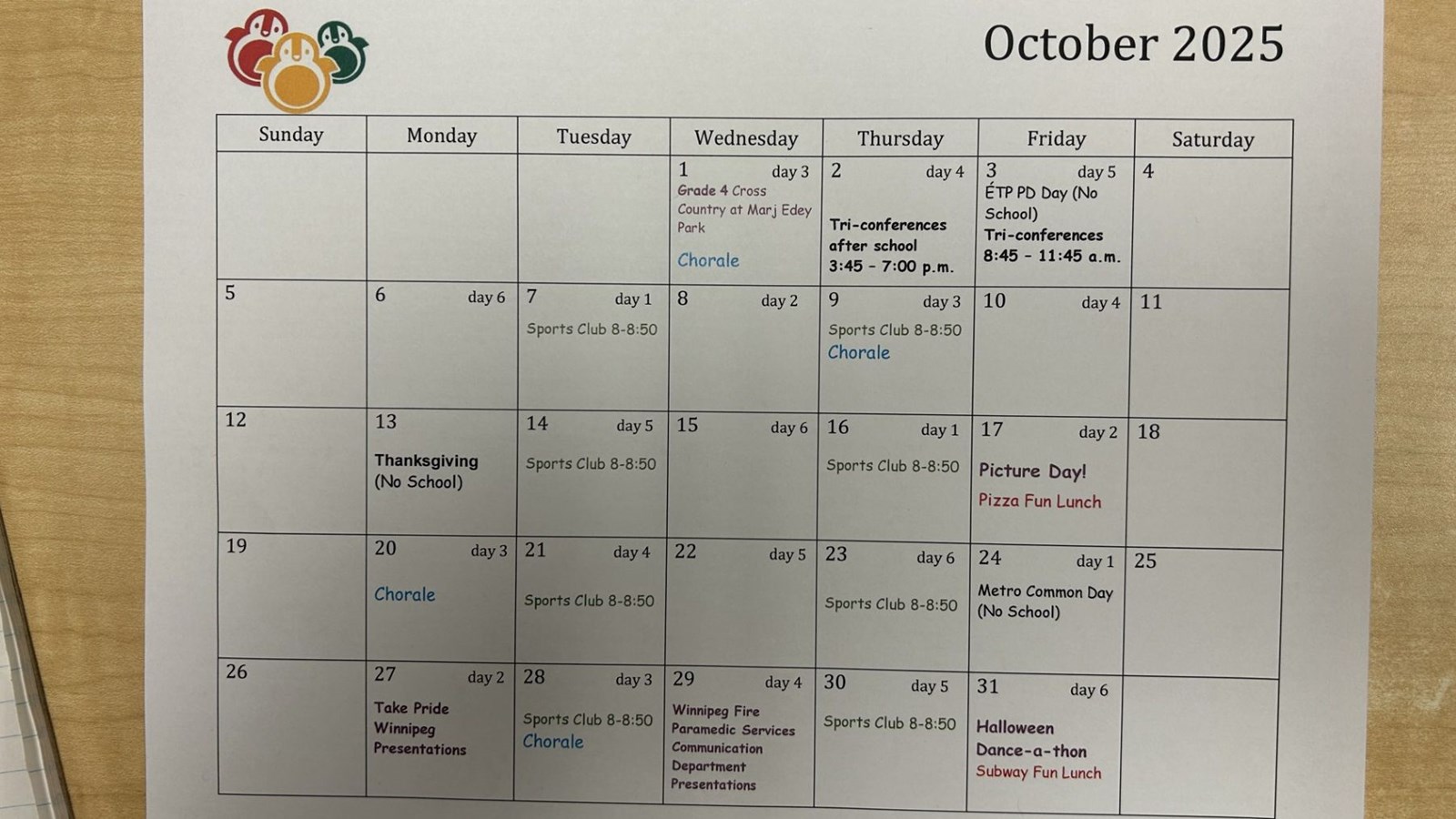October School Calendar