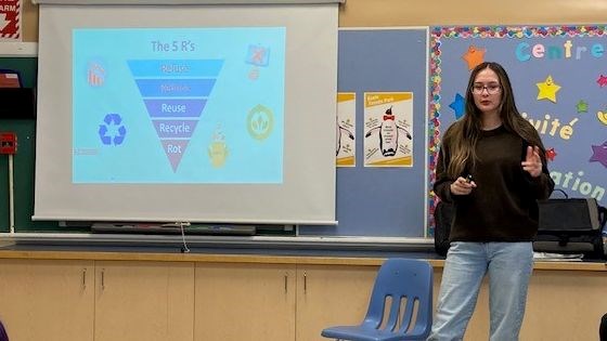 We thank M. Tom and Mme Lauren from Take Pride Winnipeg who taught us about the importance of keeping our home, community, land, and planet clean. We want to make right decisions and think critically about what we consume and what happens to containers, wrappers and composable food and materials once we discard them.